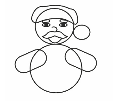 Następnie rysujemy wąsy, tułów oraz pomponu czapki Mikołaja